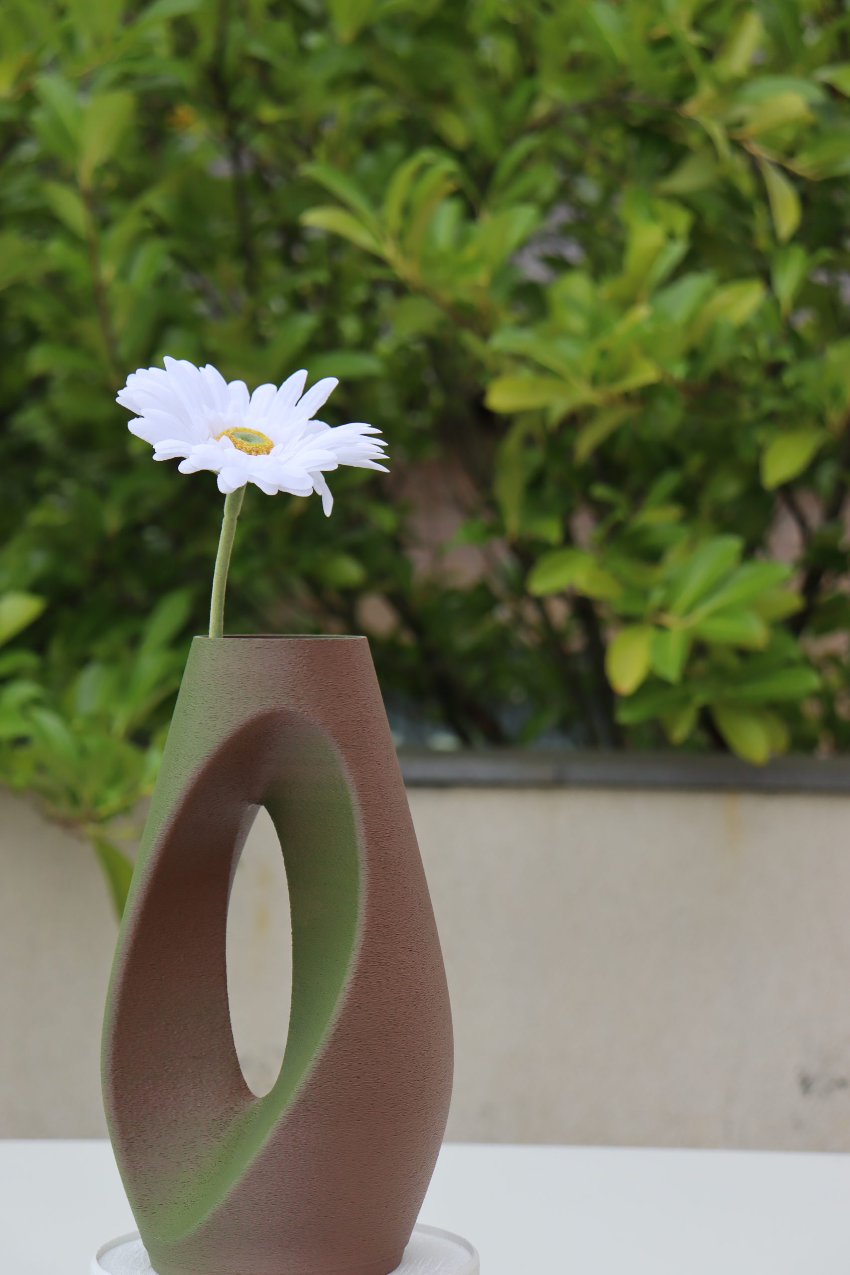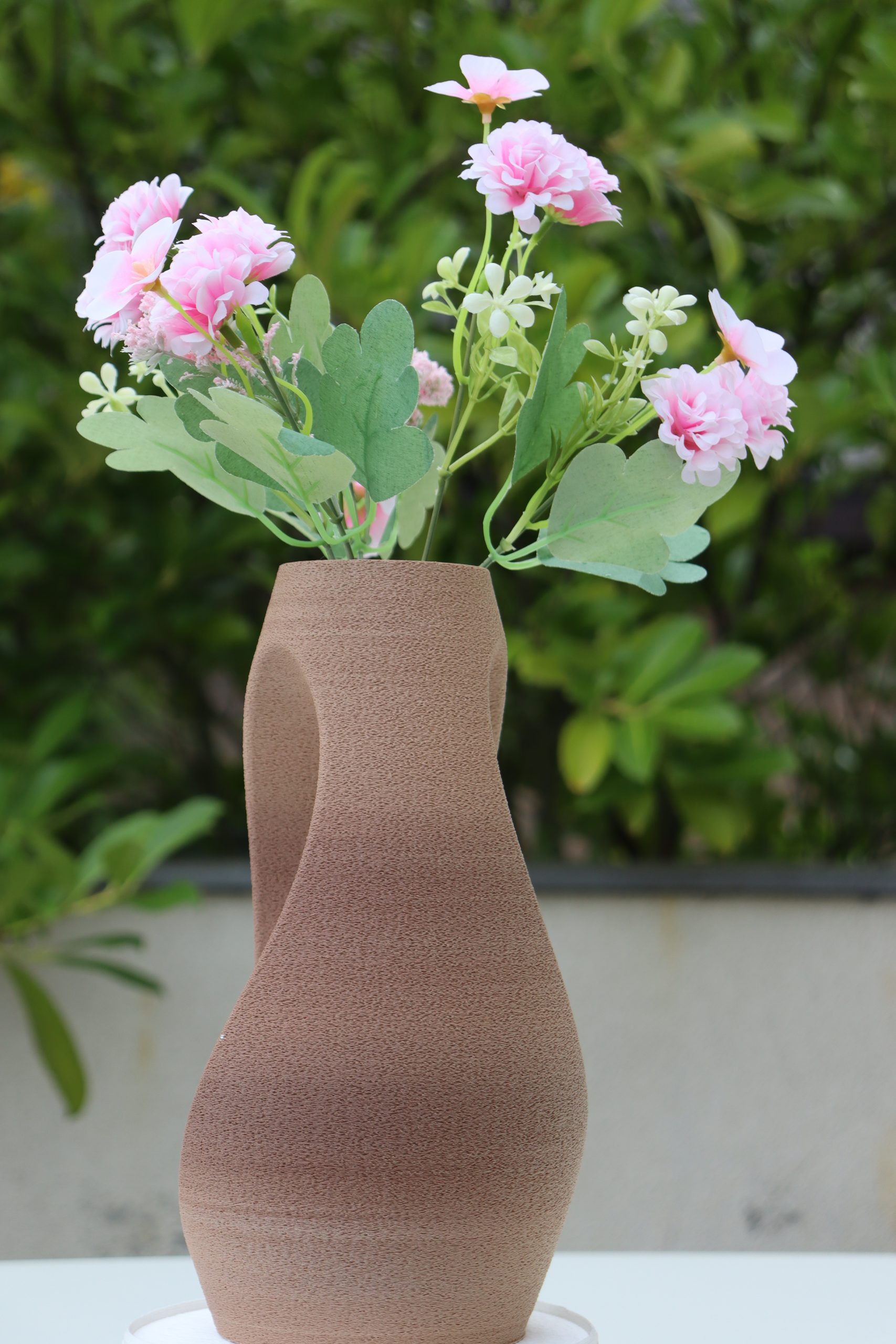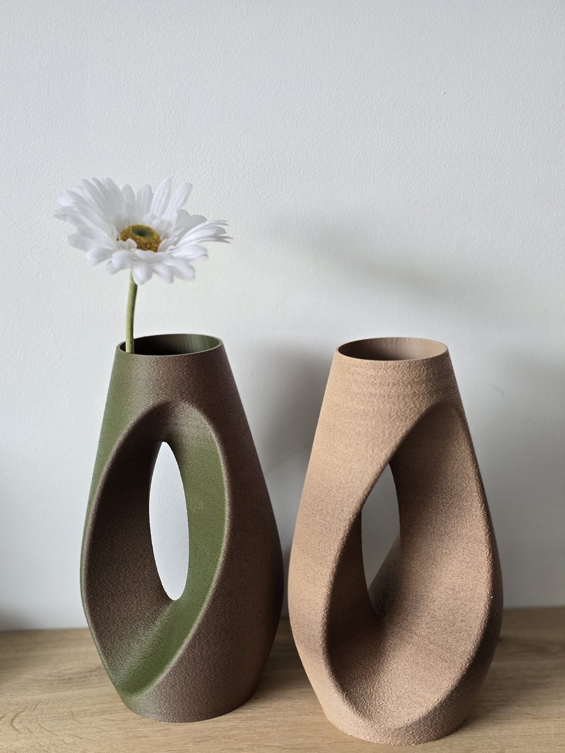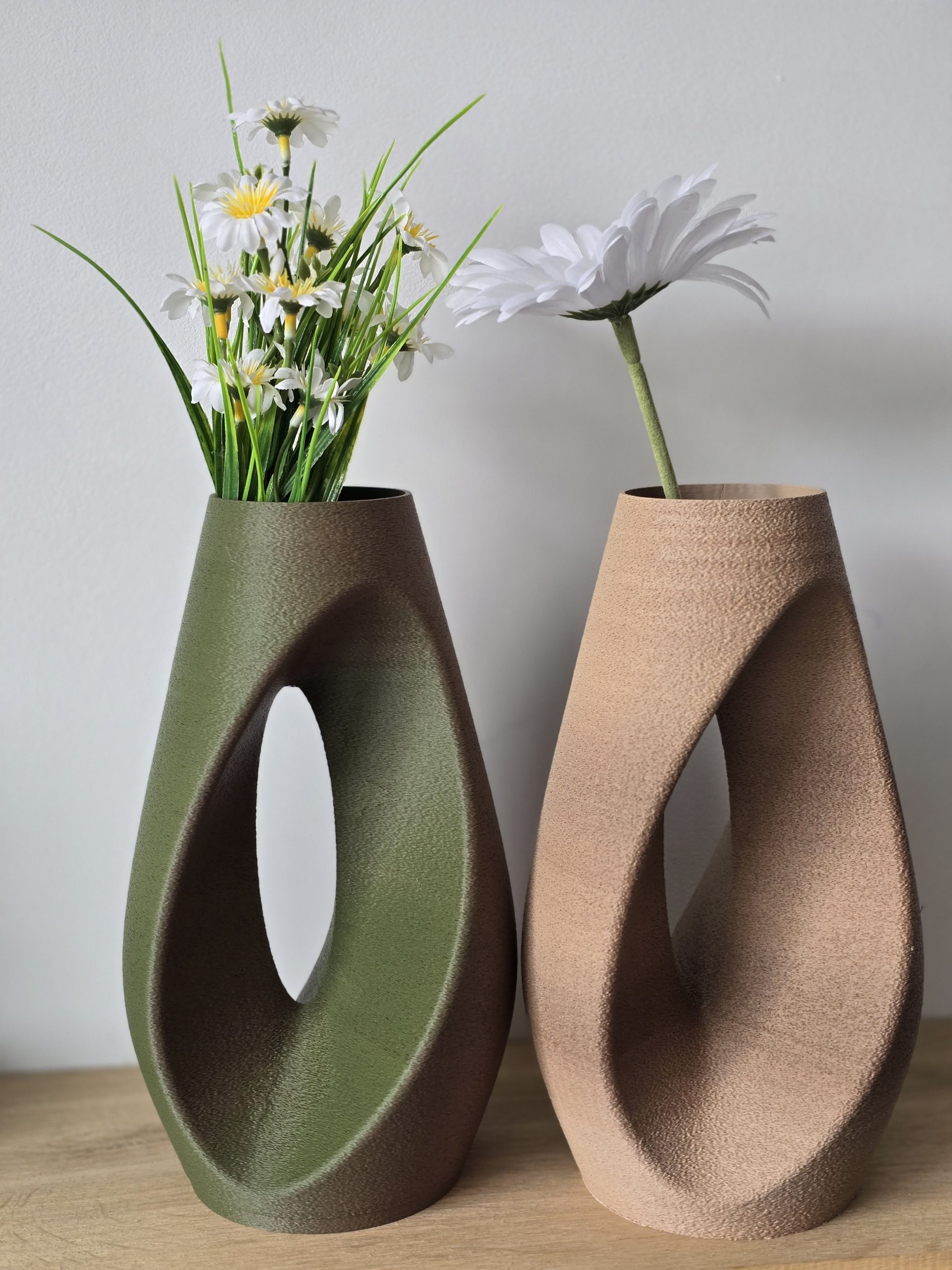 The Terra Collection: A modern, two-toned vase crafted from eco-friendlly PLA. Its distinct, twisted design and textured finish reflect the natural world, bringing a touch of organic art to your home.